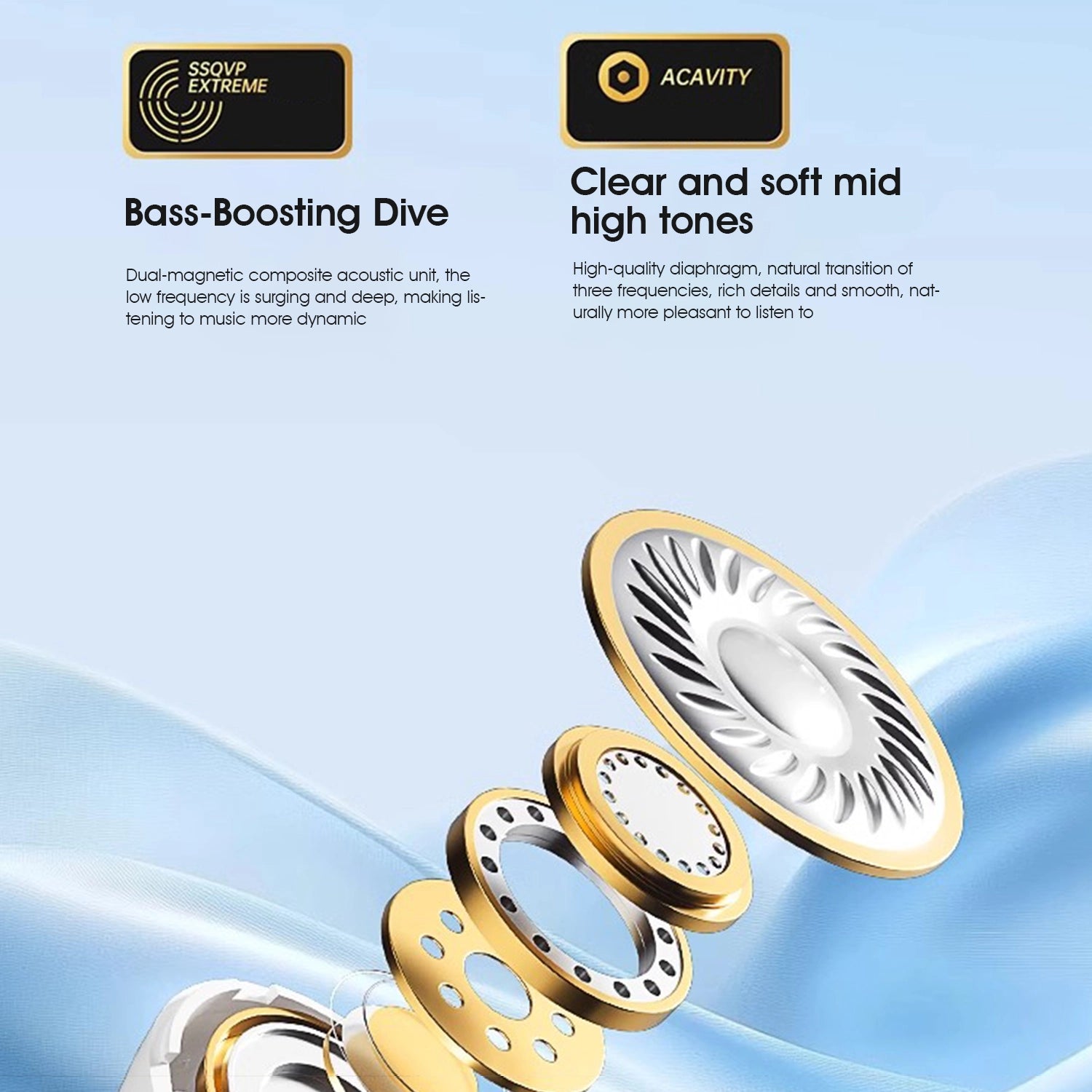 Large-chamber acoustic structure + dynamic three-band tuning deliver powerful bass, clear and smooth mids and highs, and immersive stereo sound.